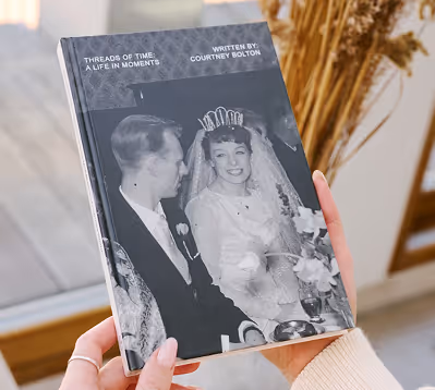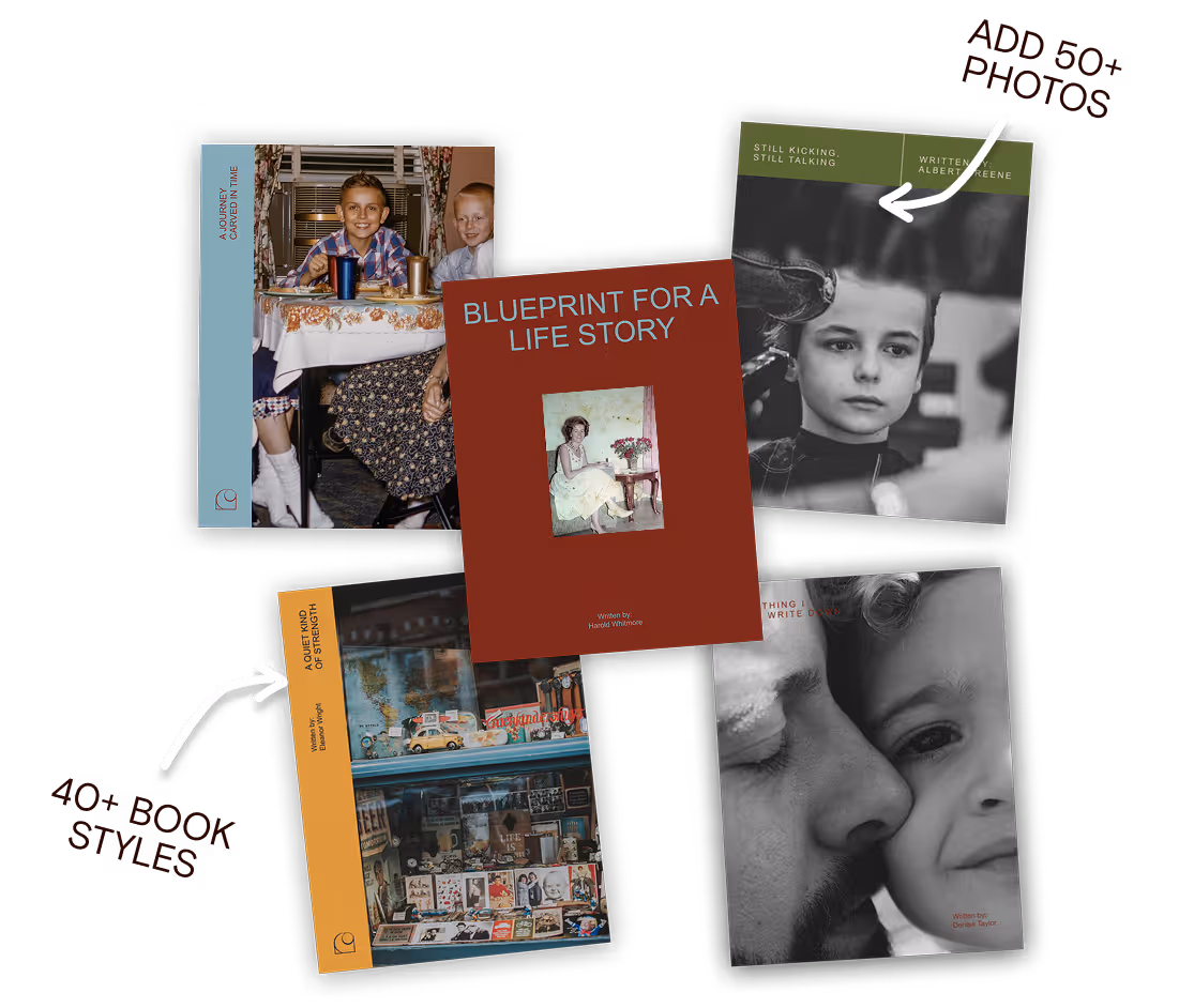Add photos to your life story book, wrap it in a beautiful cover, create your title, and choose thoughtful add-ons like audiobooks, gift boxes, and extra printed copies for family & friends.